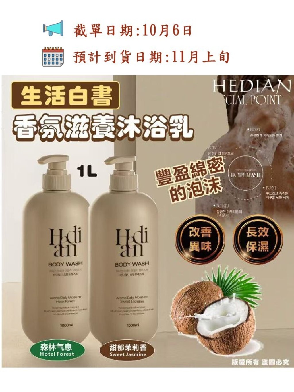 韓國🇰🇷生活白書 HEDIAN 香氛滋養沐浴乳1L