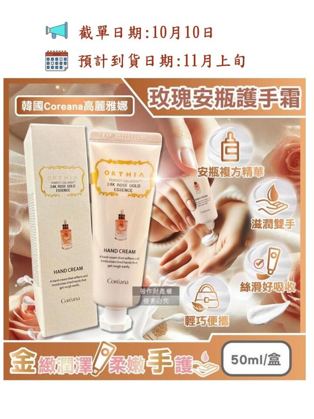韓國🇰🇷直送✈️ COREANA 24K黃金玫瑰安瓶護手霜 50ml (2支/套)