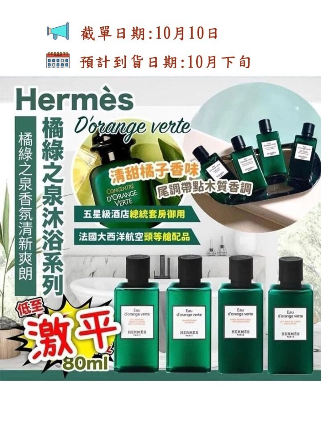 🌸愛馬仕(Hermes)橘綠之泉洗髮水/沐浴露/身體乳-80ml