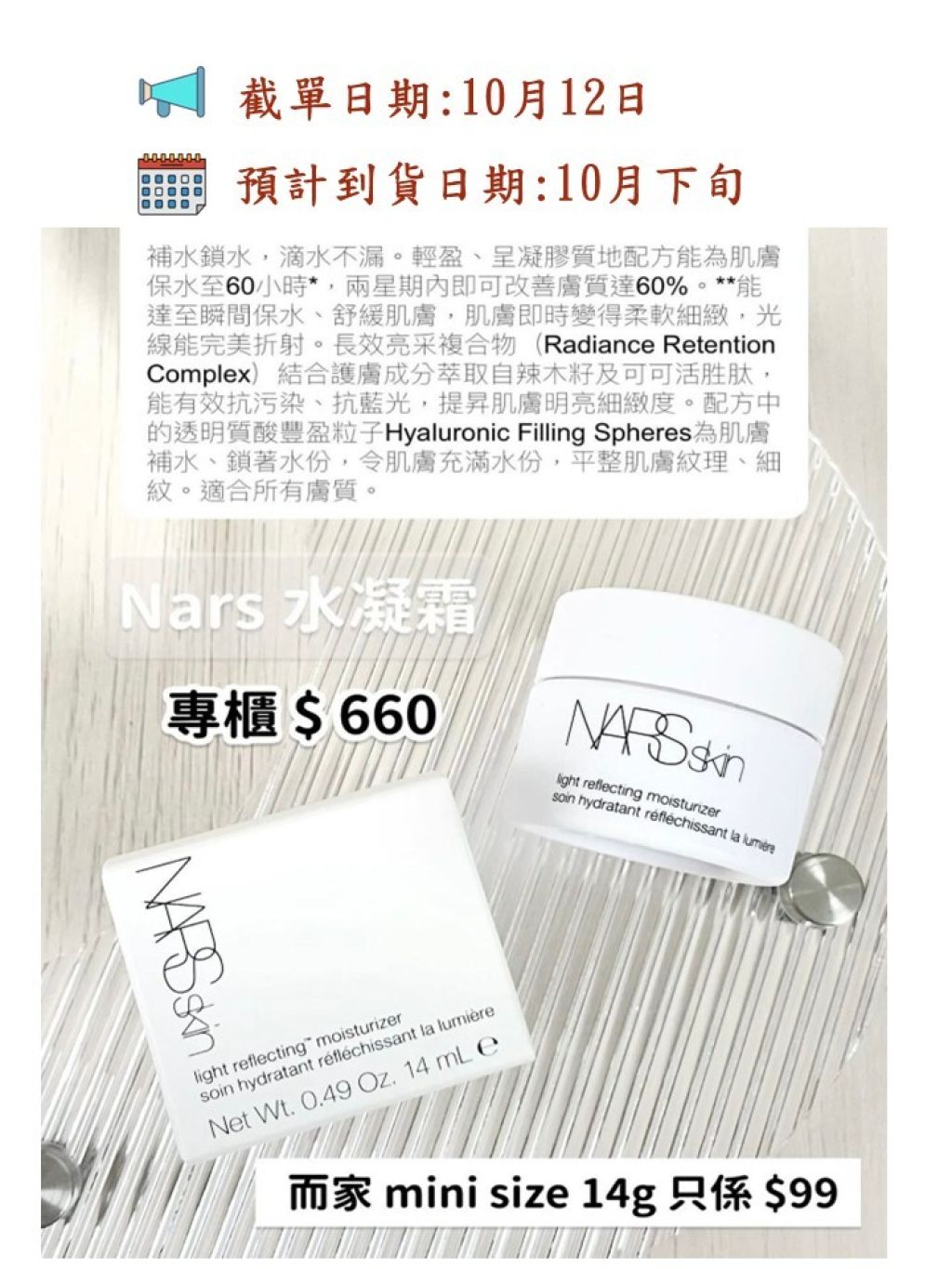 🌸NARS 原生光亮肌水凝霜(大白霜) 14ml