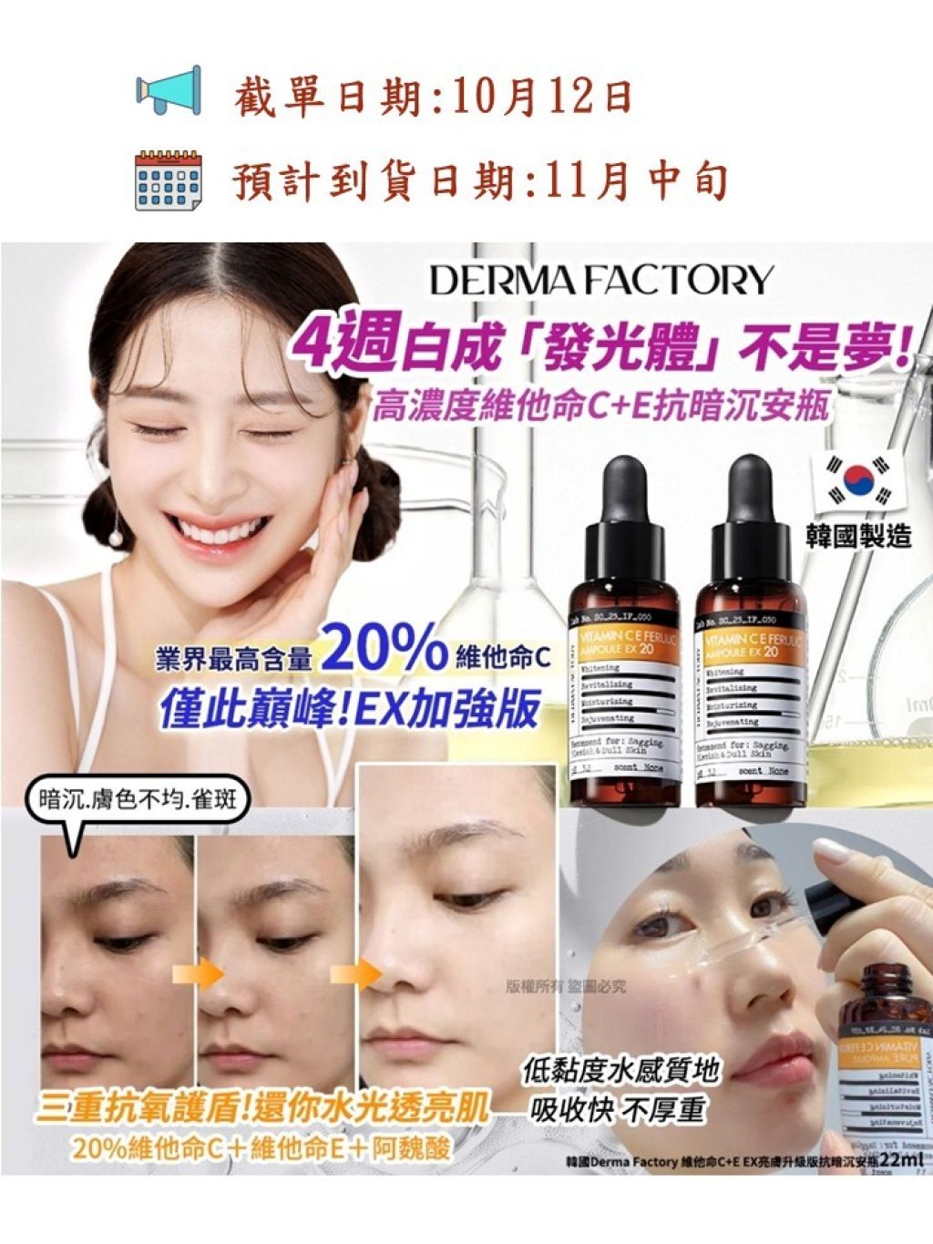 🌸韓國Derma Factory 維他命C+E EX亮膚升級版抗暗沉安瓶22ml