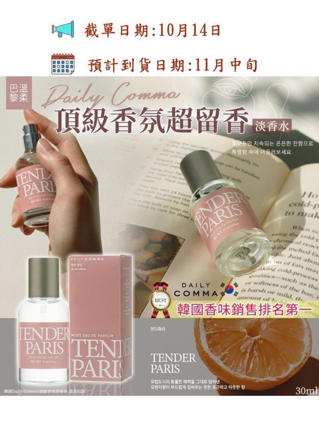 🟡韓國 Daily Comma 頂級香氛淡香水 30ml (溫柔巴黎)🟡
