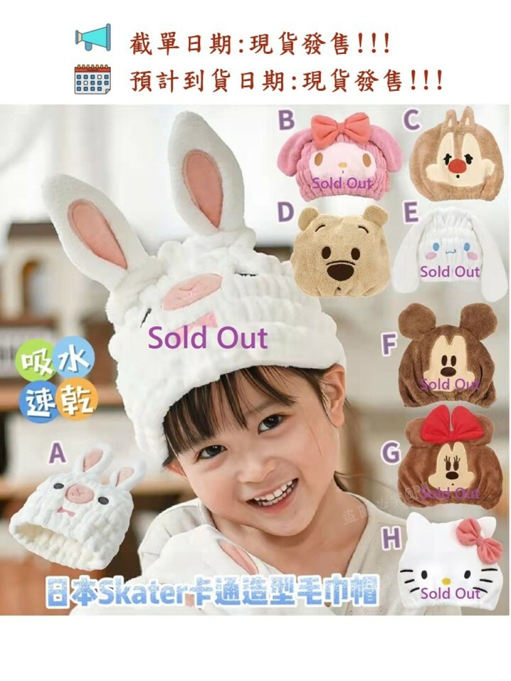 🎌日本Skater 吸水快乾卡通造型毛巾帽🎌