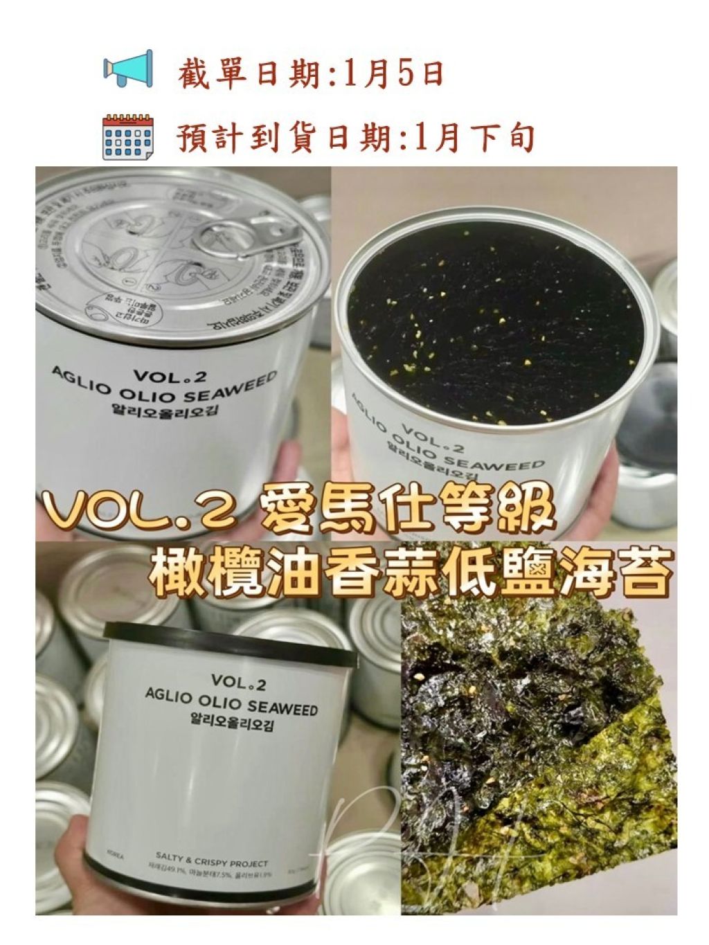 🌸全新推出韓國 VOL.2 愛馬仕等級 橄欖油香蒜低鹽海苔 30g