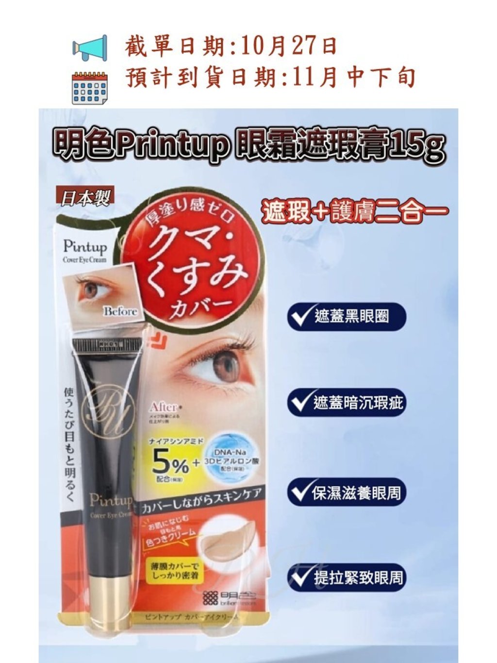 🟡日本製 明色Printup眼霜遮瑕膏15g🟡