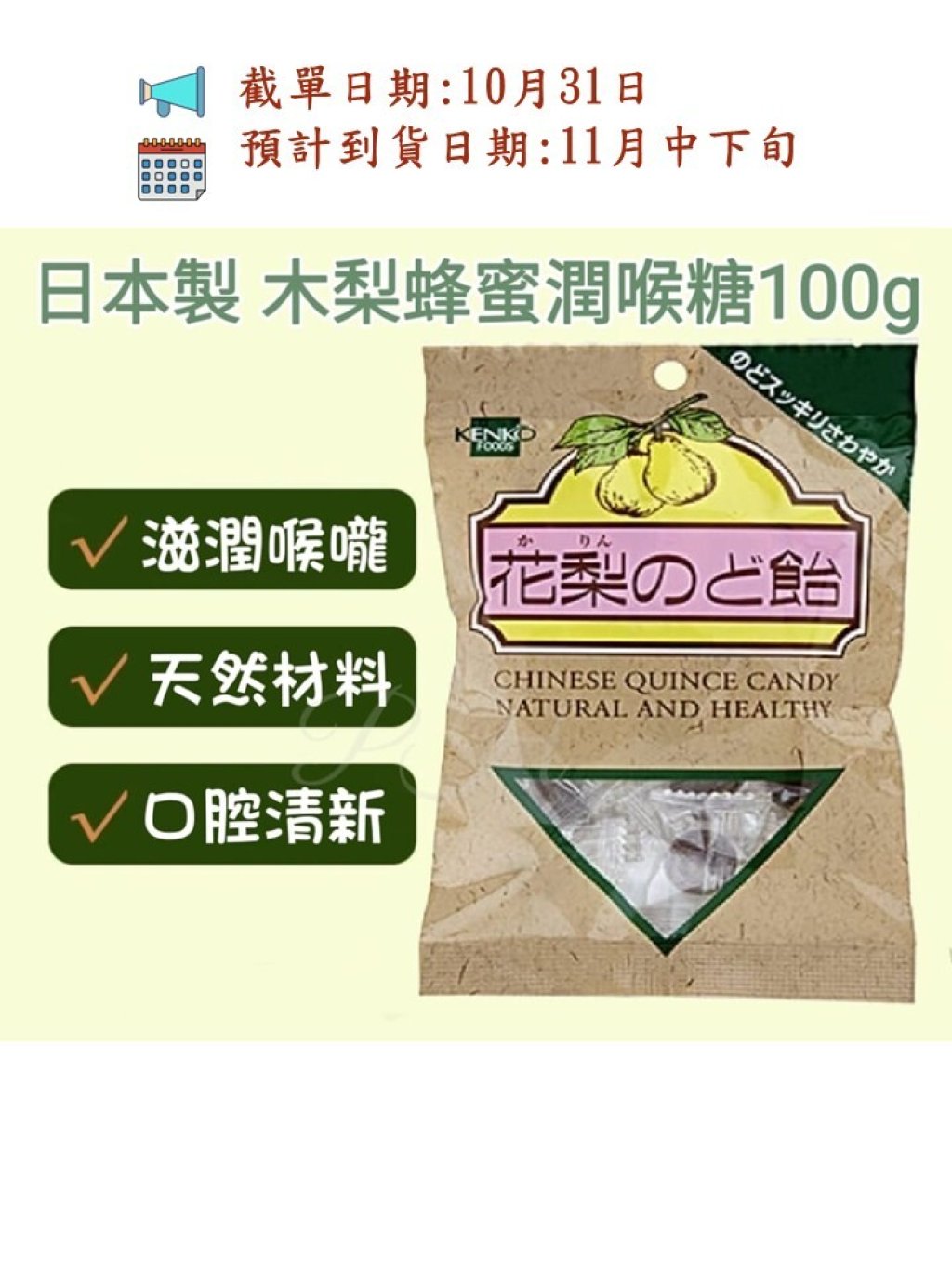 這款糖果以健康與天然材料製造🍬含有滋潤喉嚨的木梨🍐