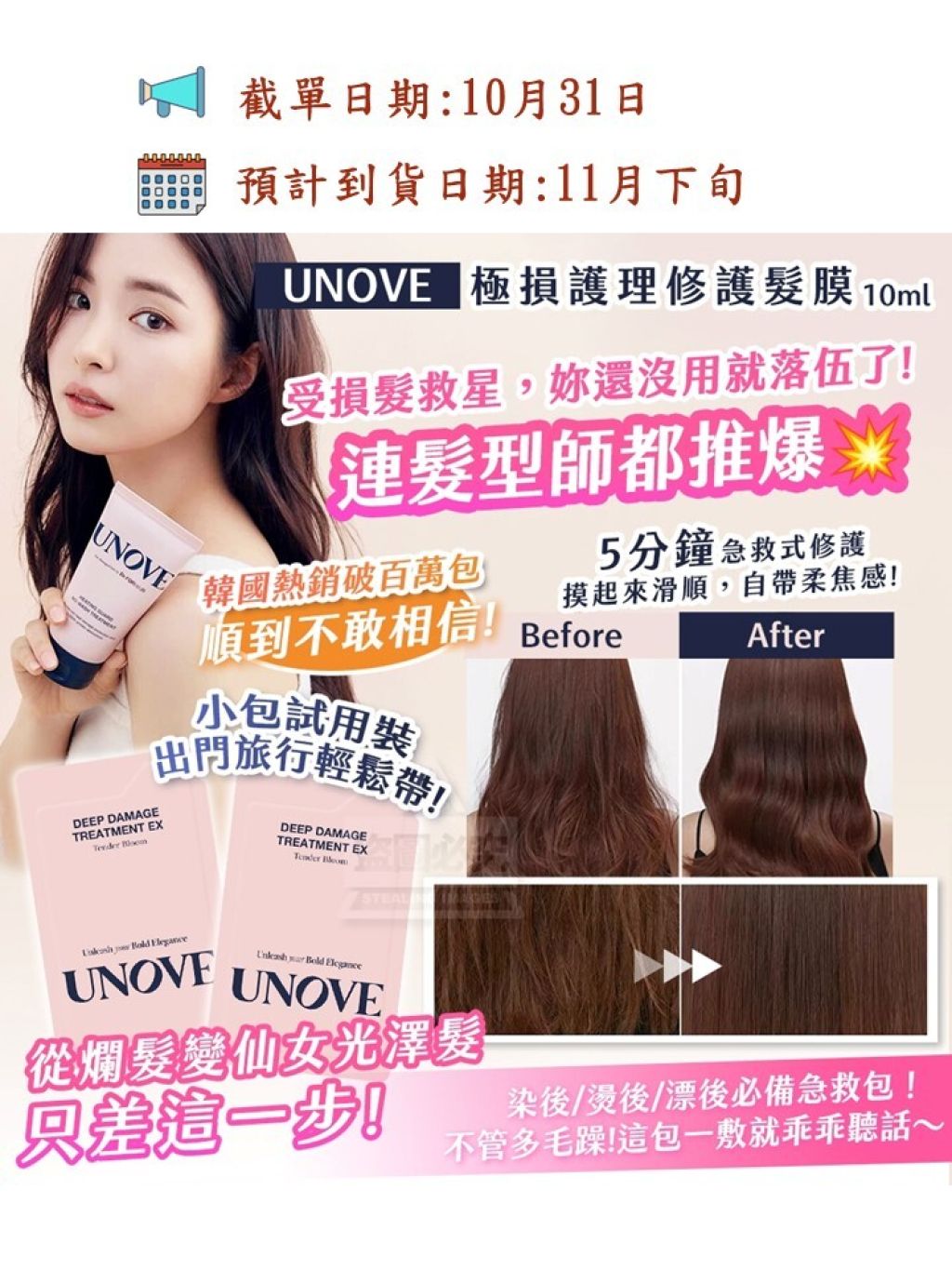 韓國製造🇰🇷 UNOVE 極損護理修護髮膜 10ml(1套5片)