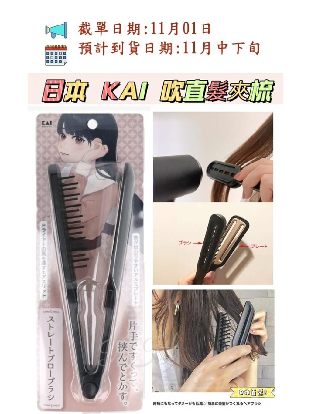 🟡日本 KAI吹直髮夾梳🟡