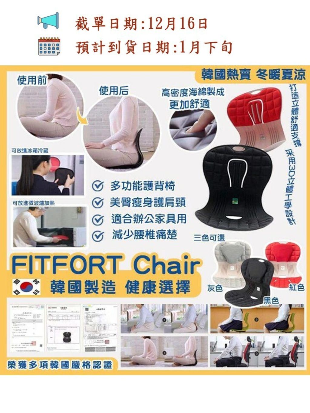 新上市 FITFORT Chair🇰🇷除咗矯正座姿外仲有一個極受歡迎既原因㊙️就係佢有跟一個軟墊㊙️可以放係椅背到冷💠熱♨️敷都可以😍可以減輕腰部不適👍🏻舒緩痛楚👍🏻軟墊可放入微波爐加熱♨️勁方便呀🥰女士們又可以當暖水袋用㊙️依個設計真係好貼心呀💯所以韓國一出就賣斷市啦🤩