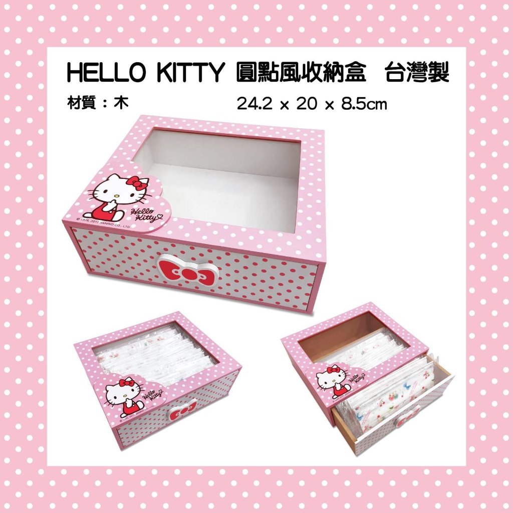 台灣 Sanrio Hello Kitty 木質圓點風收納盒