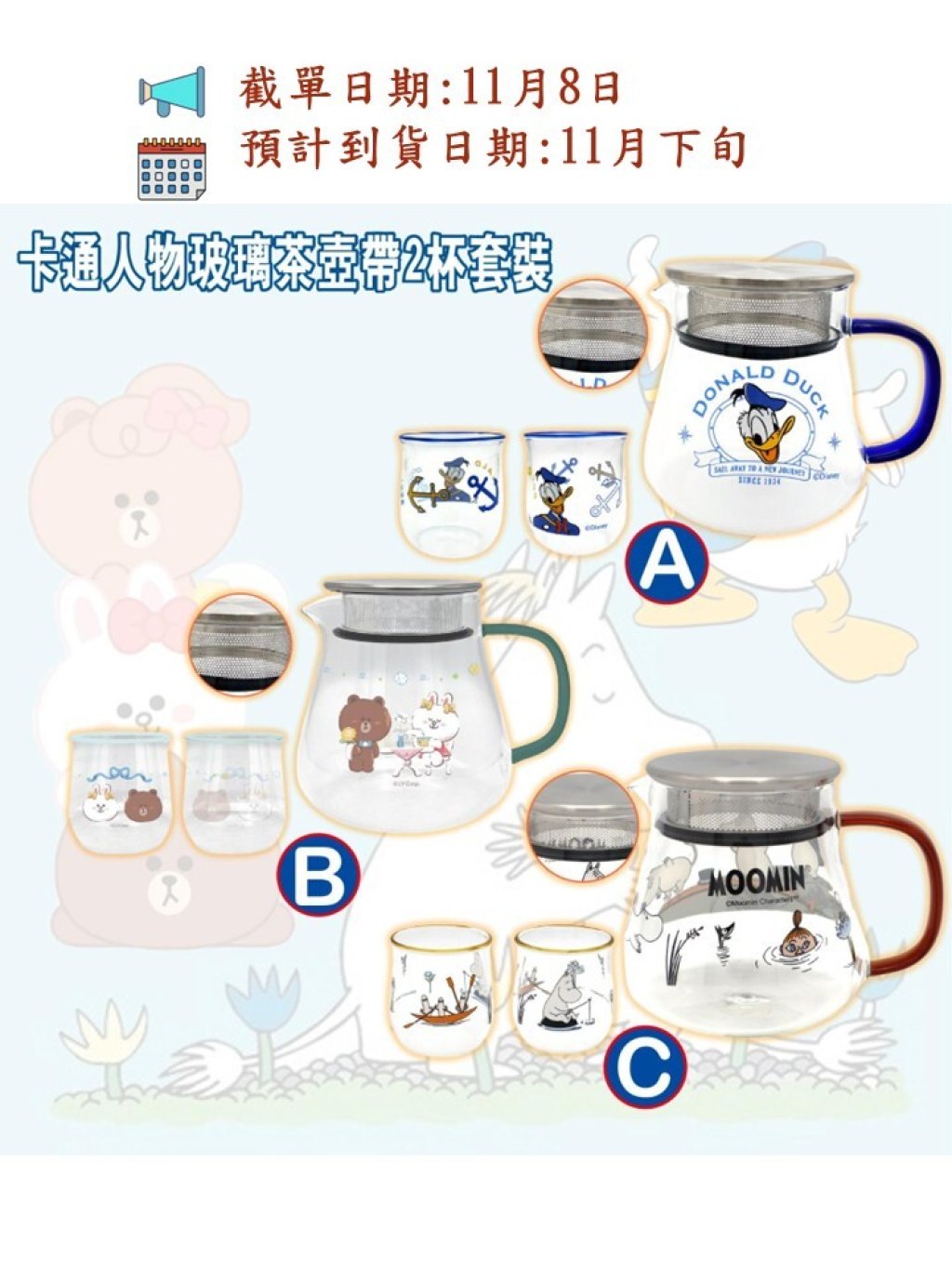 🎉卡通人物玻璃茶壺帶2杯套裝