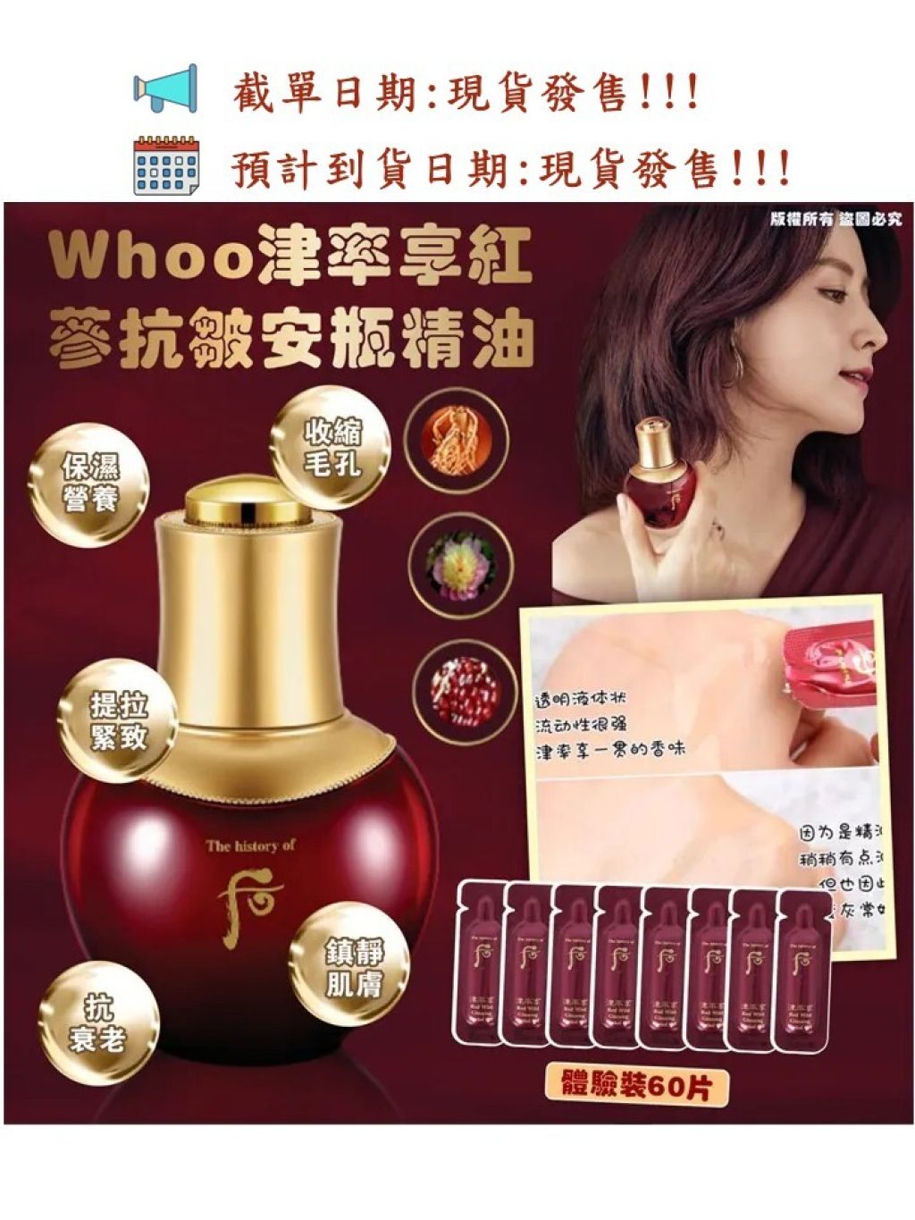 Whoo 后︱津率享 紅蔘抗皺安瓶精油 體驗裝 1套60片