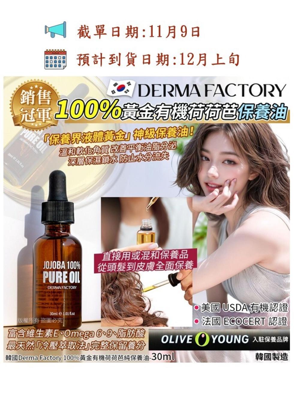 ✨💛【韓國Derma Factory 100%黃金有機荷荷芭純保養油】💛✨