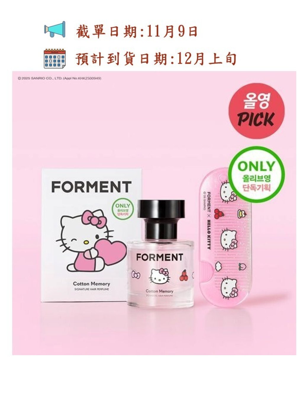 🌸Forment x HelloKitty 💘 香髮噴霧送隨身梳