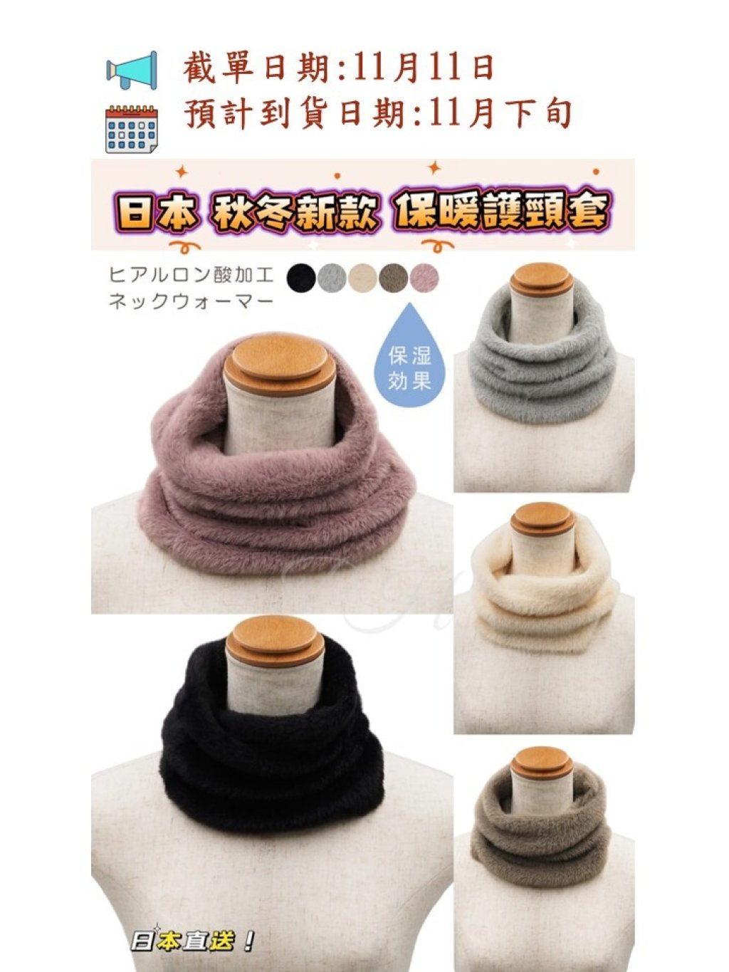 簡單時尚護頸設計🧣面料具有透明質酸處理的保濕效果🤩柔軟親膚、保暖防風🌬️佩戴舒適☃️冬天必之選‼️