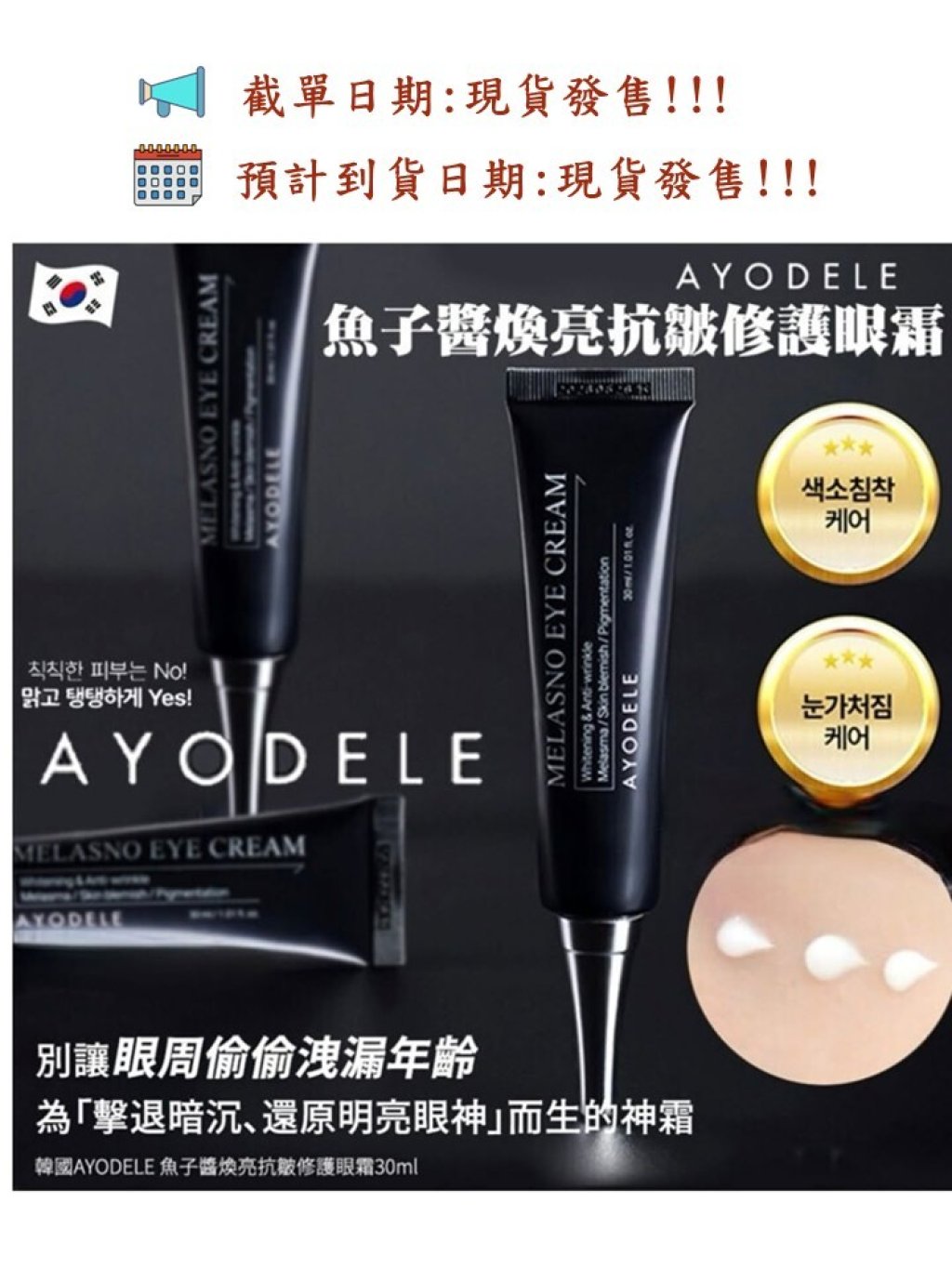 韓國🇰🇷皮膚科學研究所【AYODELE魚子醬煥亮抗皺修護眼霜30ml】