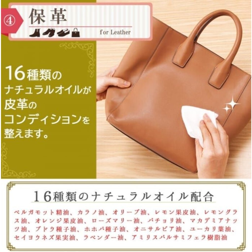 含16種天然精油和防霉劑,能擦亮滋養皮革製品👞並有效去除污漬霉菌🧫以杜絕發霉的情況🦠保護皮革👜賦予皮革光澤如新!