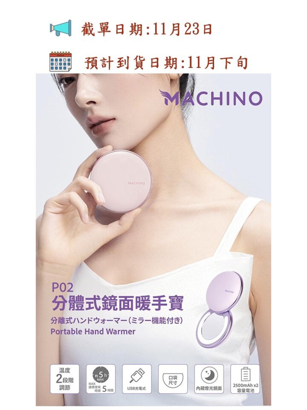 冬天又快到了!MACHINO 新出P02 分體式鏡面暖手寶全新登場!