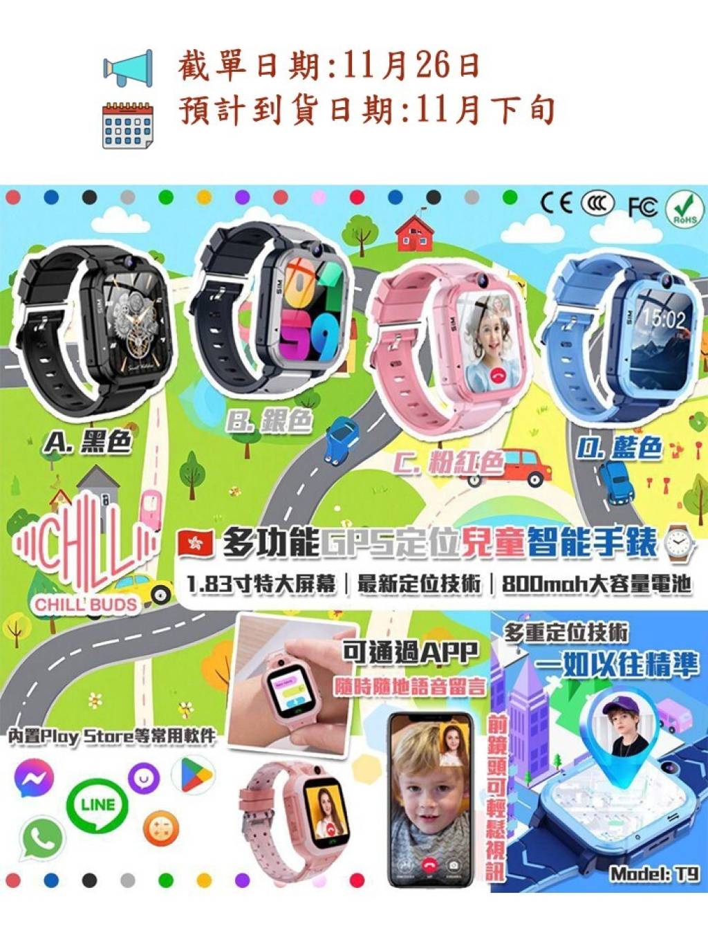 🟡Chillbuds T9多功能GPS定位兒童智能手錶🟡
