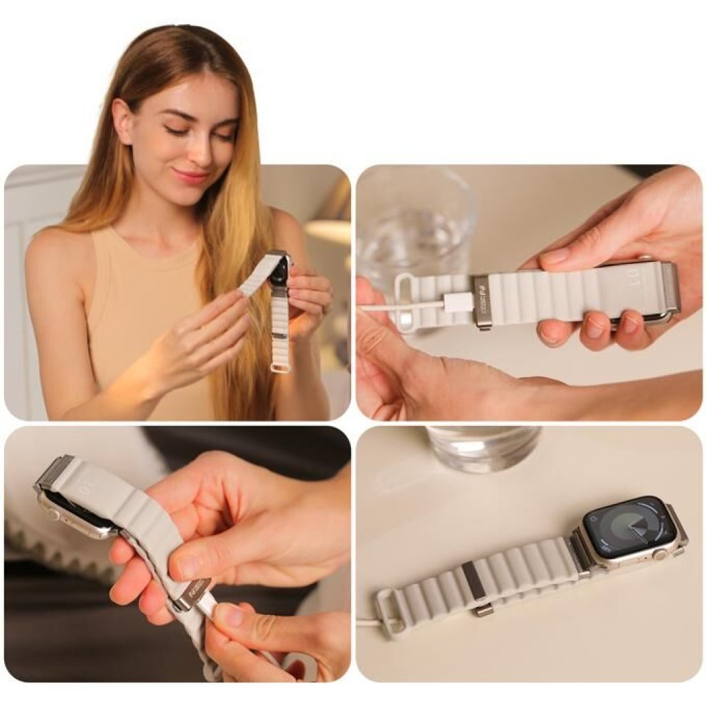 EnergyLink 就是你的救星!將充電盤巧妙融合於錶帶,只要輕鬆磁吸對折,再接上 Type-C 線,就能像手機一樣即插即充,隨時快速替 Apple Watch 補充電力🔋⚡同時擁有 IP68 防水防塵設計,就算下水游泳或遇到風雨,也能安心充電不停歇!