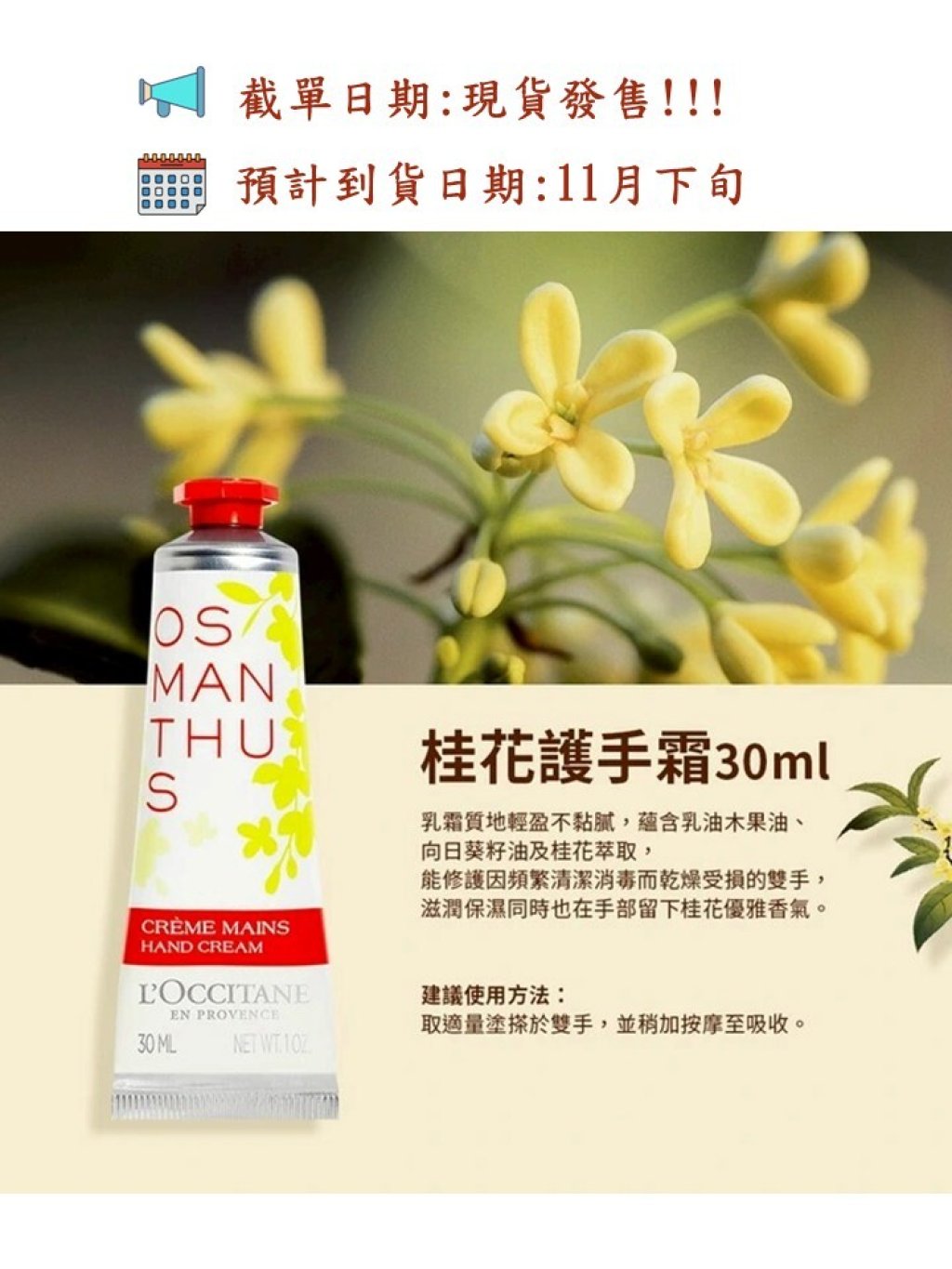 雲中月桂護手霜30ml,小小的一支可以隨身攜帶,淡黃搭配橘紅色一眼望去便有了秋天的溫暖,塗在手上潤而不膩,前調的果香讓人心情大好,在果香的味道逐漸散去後桂花的香味逐漸淡出溫柔愜意