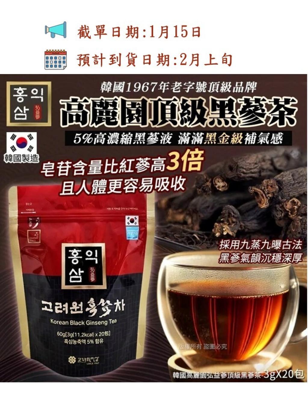 韓國高麗園弘益蔘頂級黑蔘茶-3gX20包