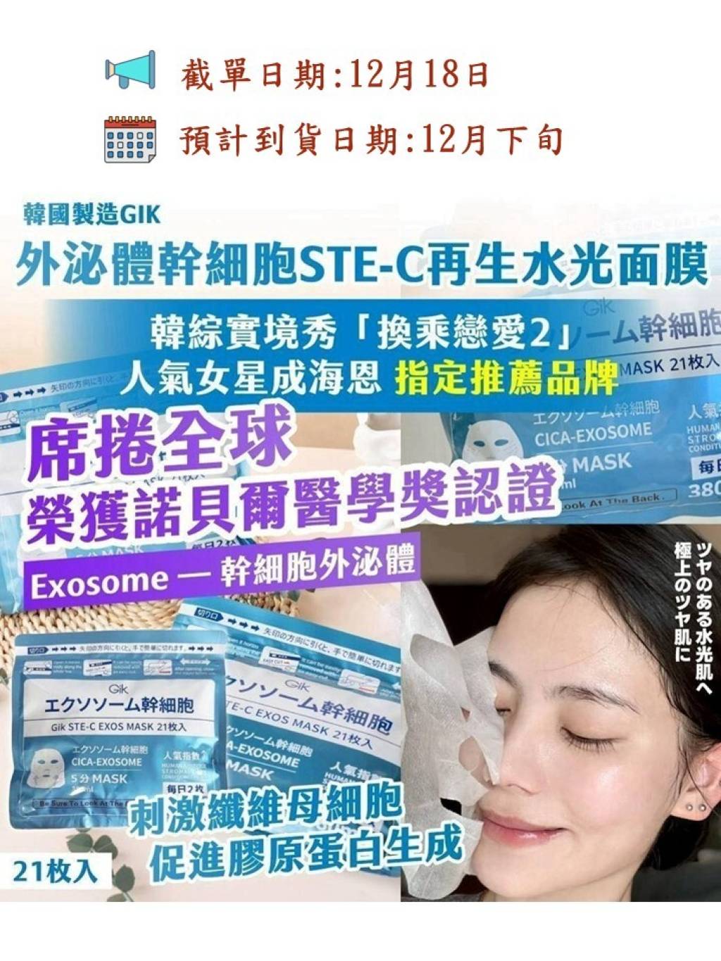 🌸韓國製造 GIK 外泌體幹細胞 STE C 再生水光面膜(1包21入)