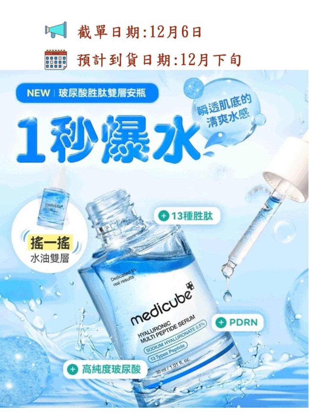 韓國Medicubeの一秒爆水💦💦玻尿酸水油安瓶30ml