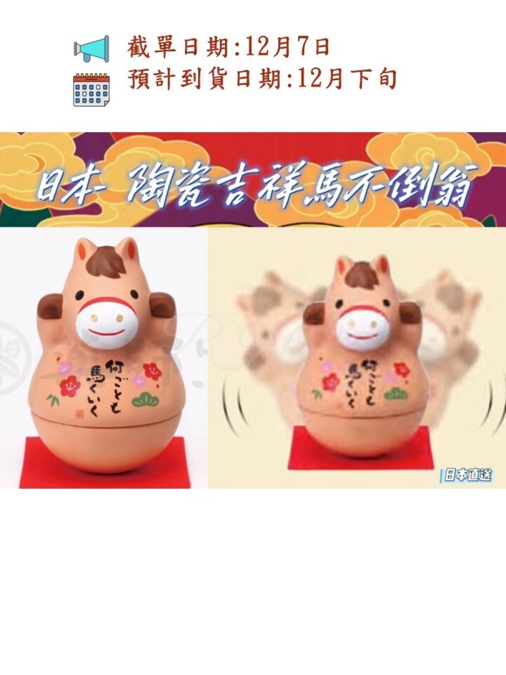 🟡日本 陶瓷吉祥馬不倒翁🟡