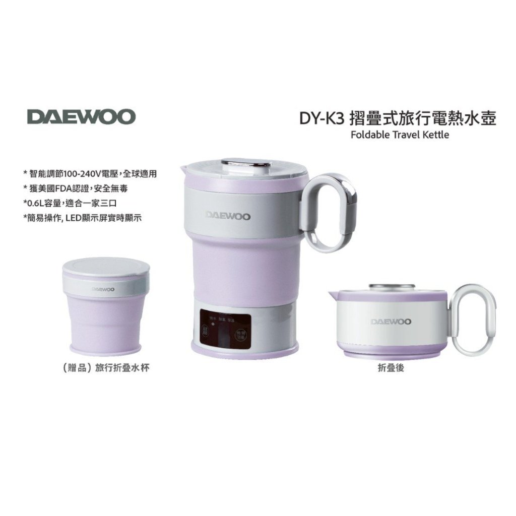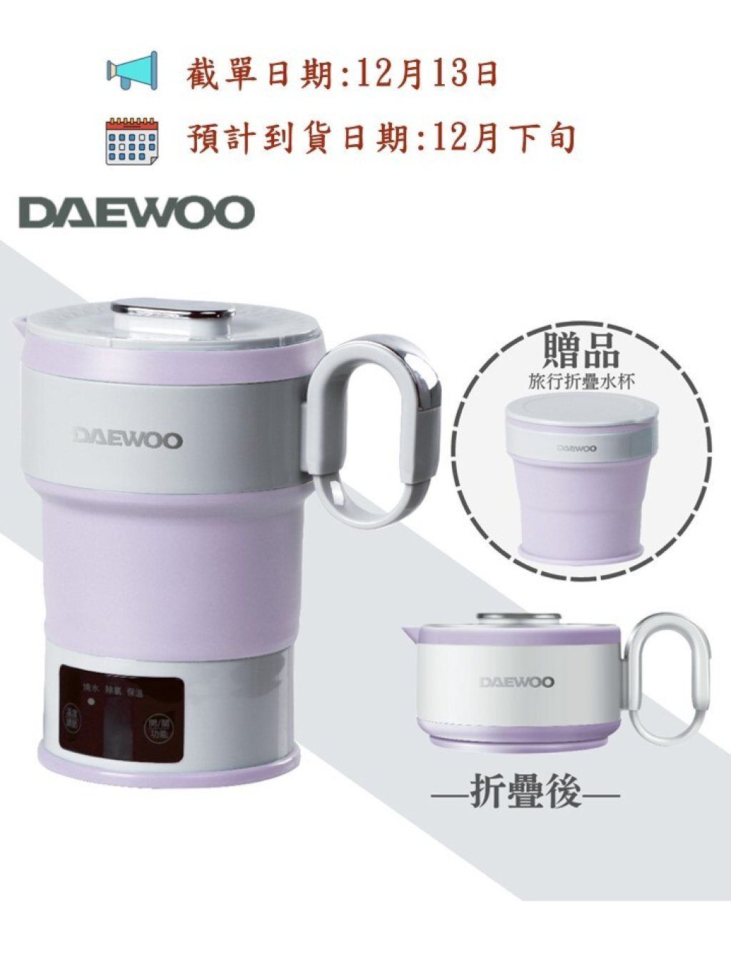 🟡DAEWOO DY-K3 摺疊式旅行電熱水壺 - 送摺疊式旅行水杯 - 紫色🟡