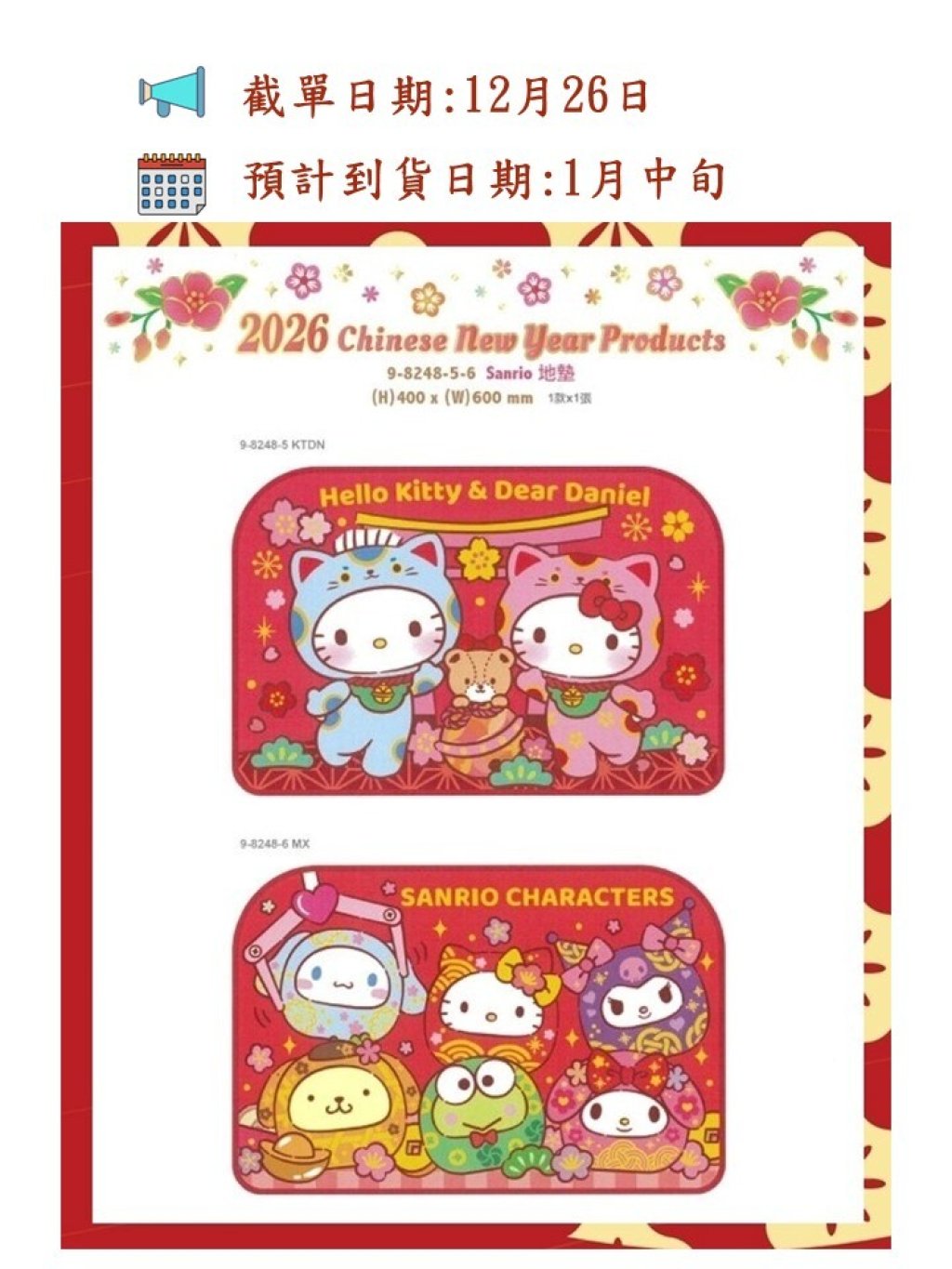 🟡2026 Sanrio/Lulu the Piggy 迎新毛絨軟地墊🟡