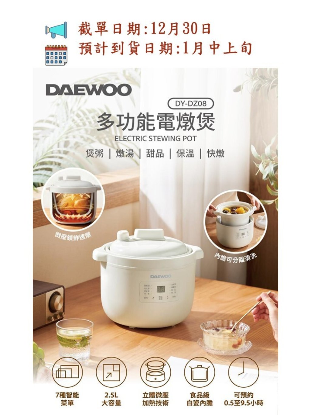 🟡DAEWOO DY-DZ08 多功能電燉煲 (2.5公升)🟡