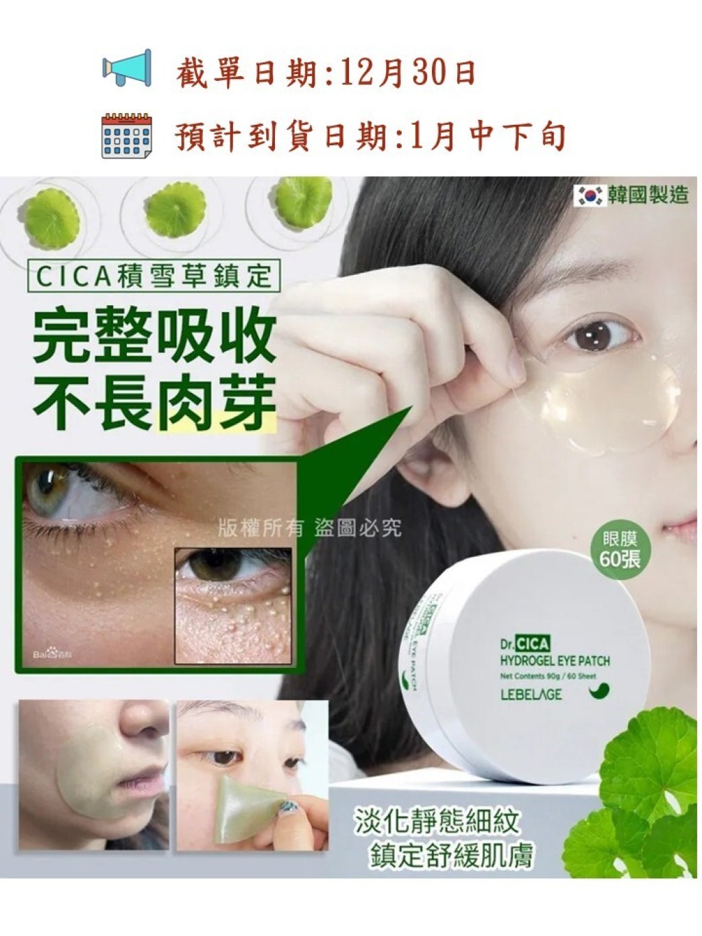 🌸韓國LEBELAGE Dr.CICA積雪草鎮定眼膜60張