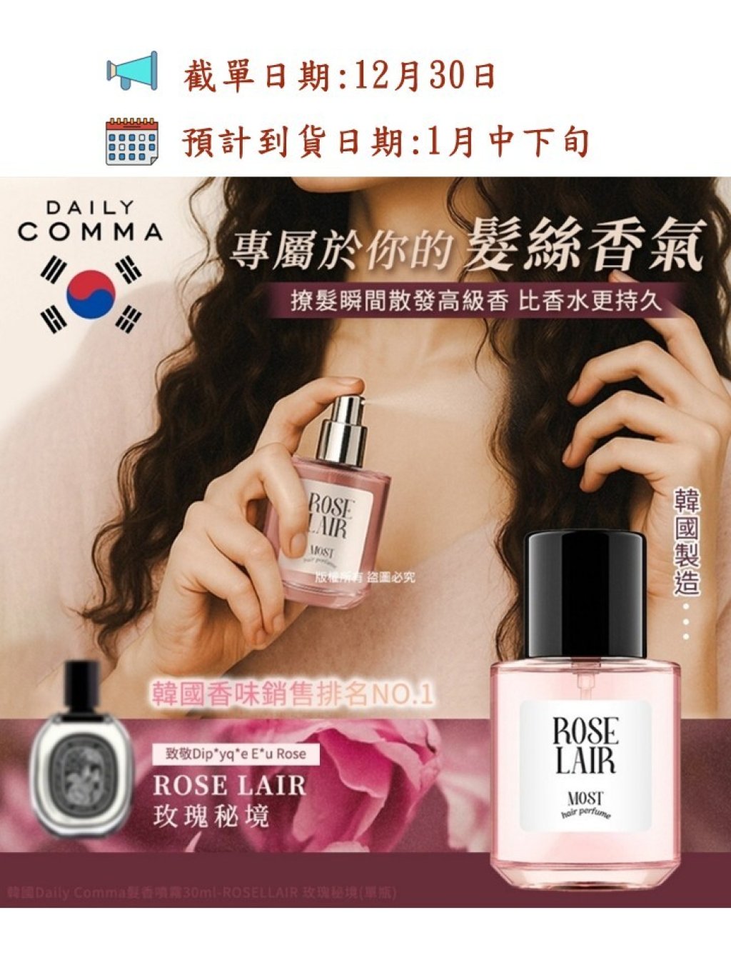 韓國Daily Comma髮香噴霧30ml-ROSELLAIR 玫瑰秘境30ml
