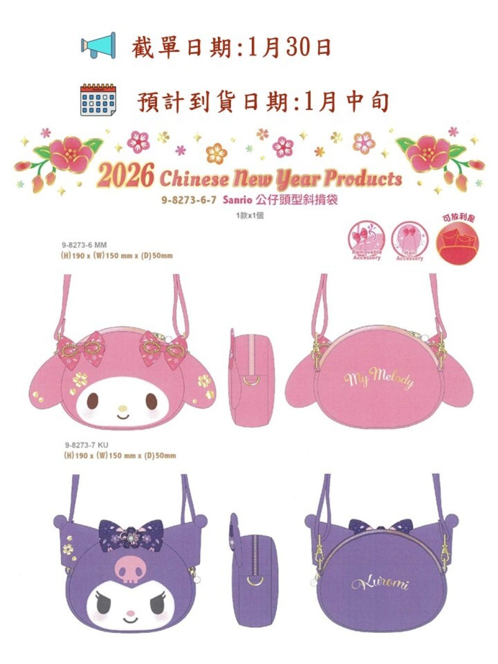 🟡Sanrio 2026 公仔頭型斜揹袋🟡