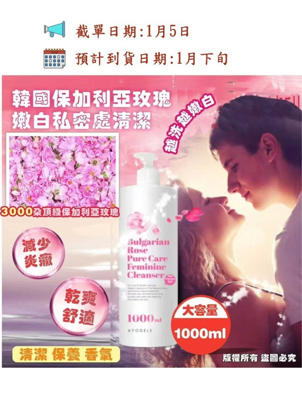 韓國🇰🇷保加利亞玫瑰🌹嫩白私密處清潔露🧴1000ml
