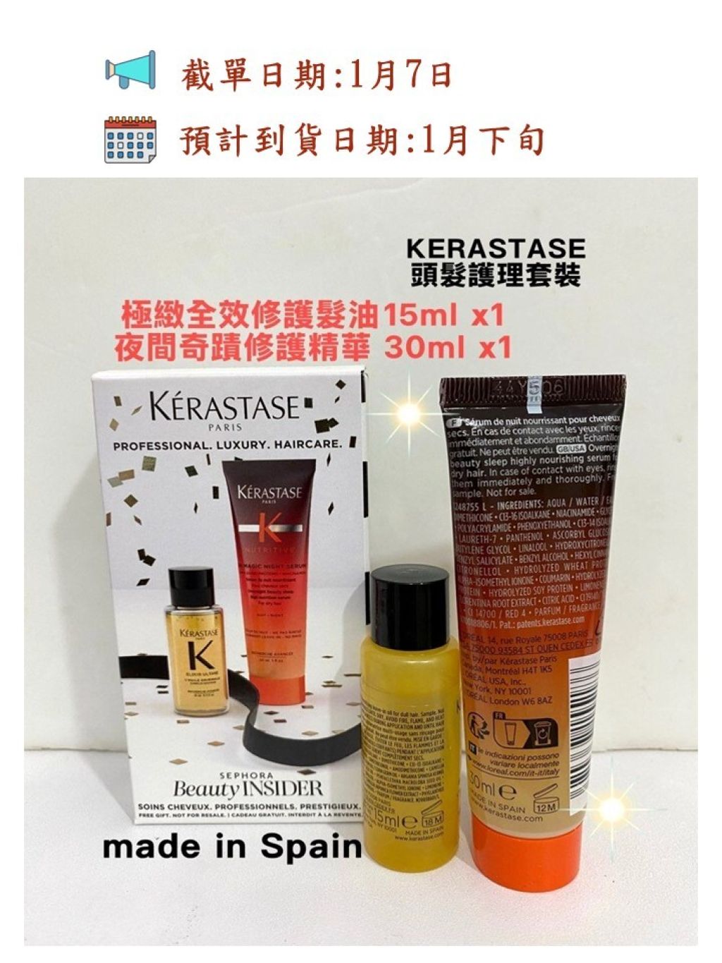 ✅極緻全效修護髮油15ml x1 / 夜間奇蹟修護精華 30ml x1