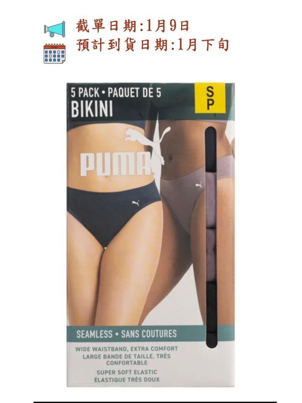 👉🏻PUMA 女裝無痕內褲🩲(5條盒裝)
