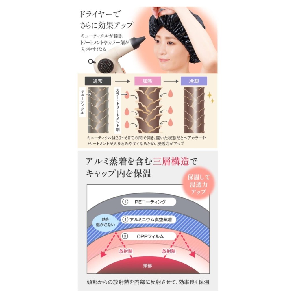 💈如使用吹風機效果更佳❗塗上染髮劑或局油劑後,戴上帽子,並用吹風機保持帽子內部温暖,促進染髮和護理吸收,提升滲透力,令頭髮上色度UP!