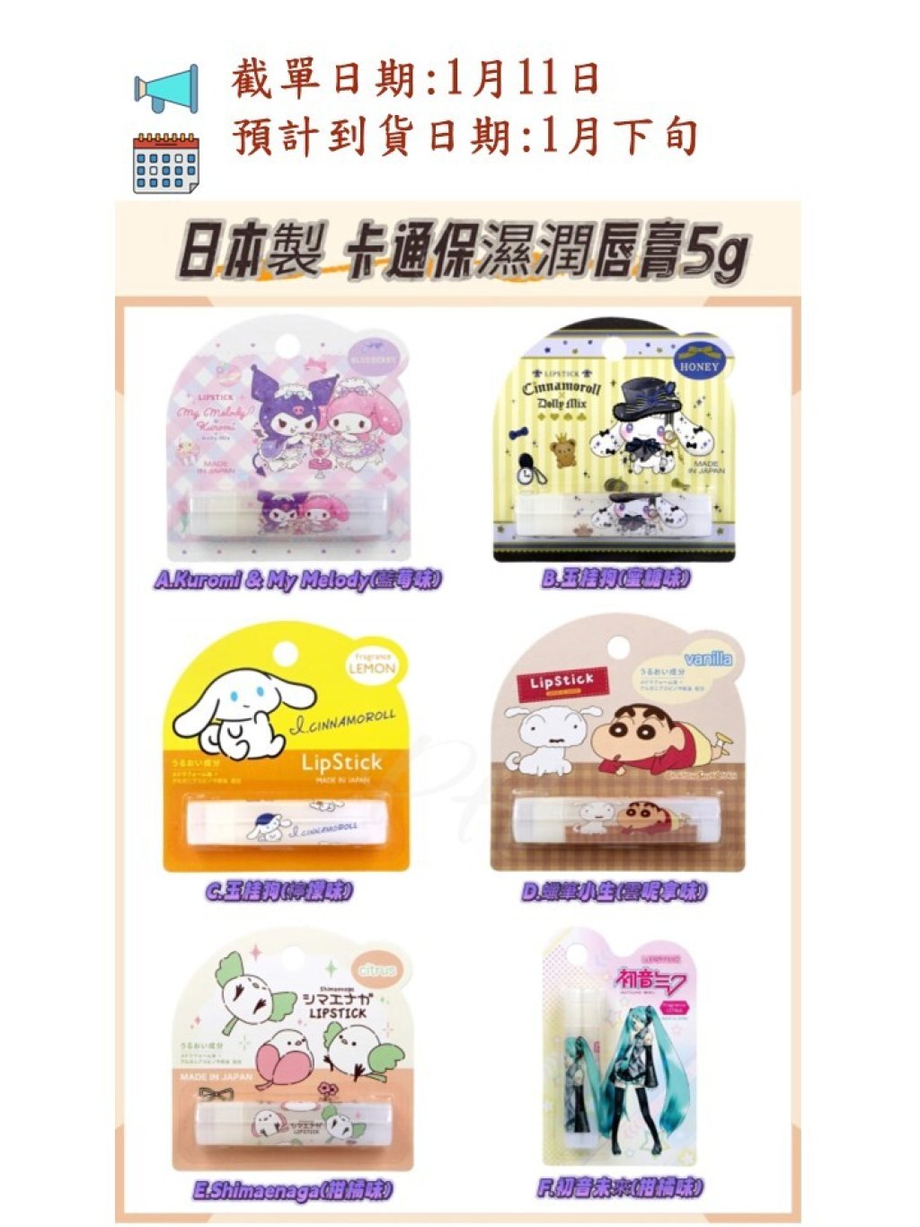 🟡日本製 卡通保濕潤唇膏5g🟡