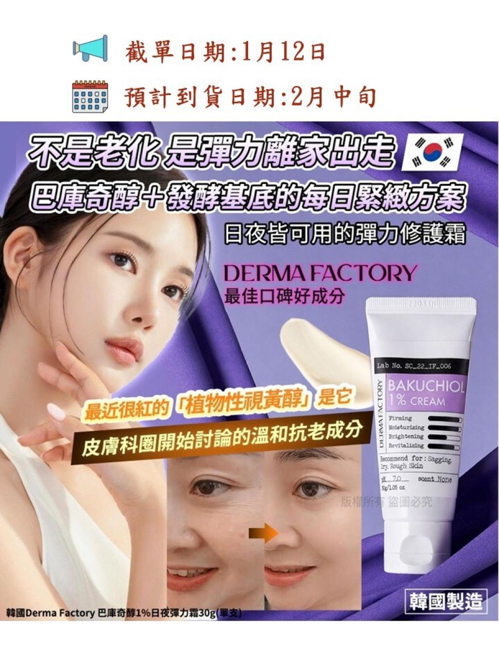 💜 韓國 Derma Factory 巴庫奇醇 1% 緊緻彈力霜 💜