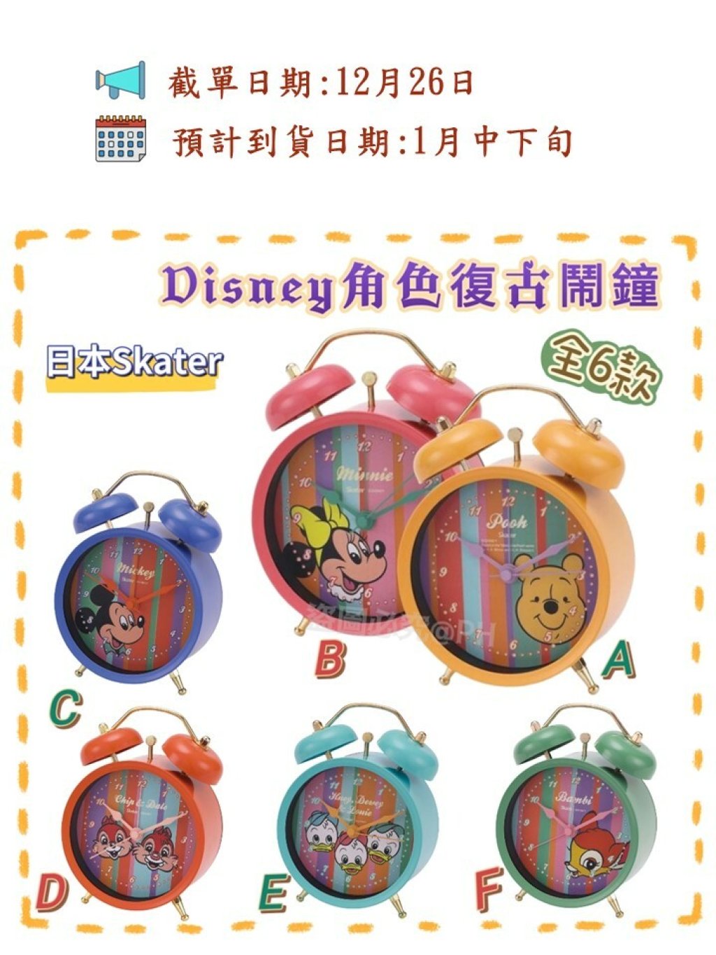 🎌日本Skater 迪士尼角色復古鬧鐘(全6款)🎌