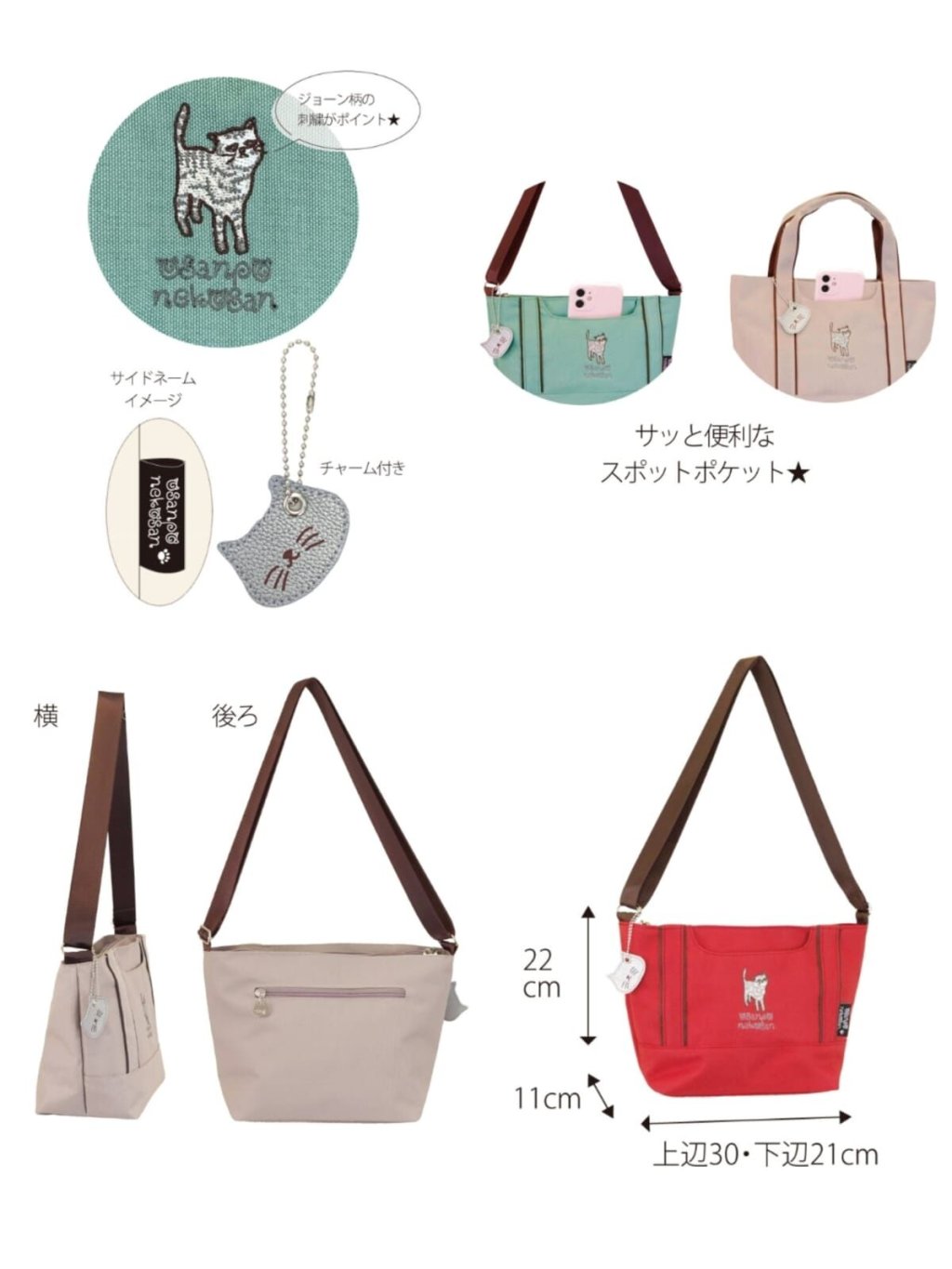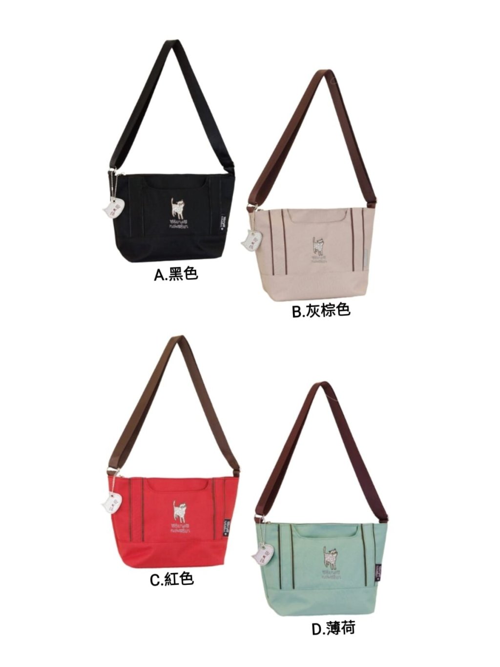 貓咪圖案刺繡,造型美觀又可愛,附帶可愛的貓頭掛飾更亮眼😻三個內袋,可放隨身出行的物品👝適合上班、逛街或旅行使用‼️