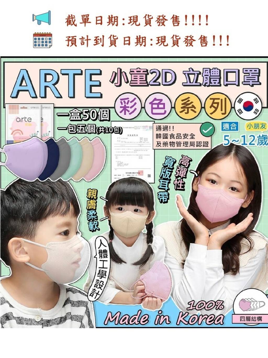 韓國𝐴𝑅𝑇𝐸 小童立體口罩(50個/盒)