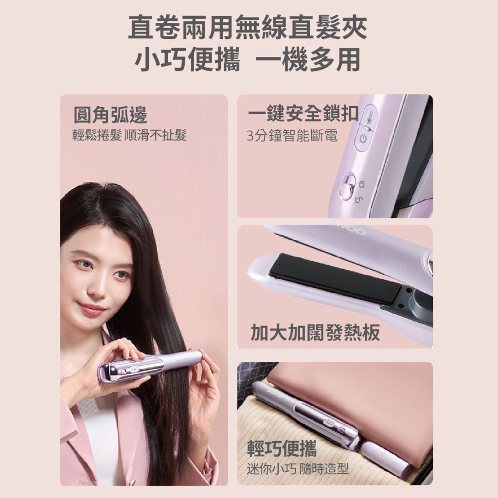 - 直卷兩用無線直髮夾,小巧便攜 ,一機多用