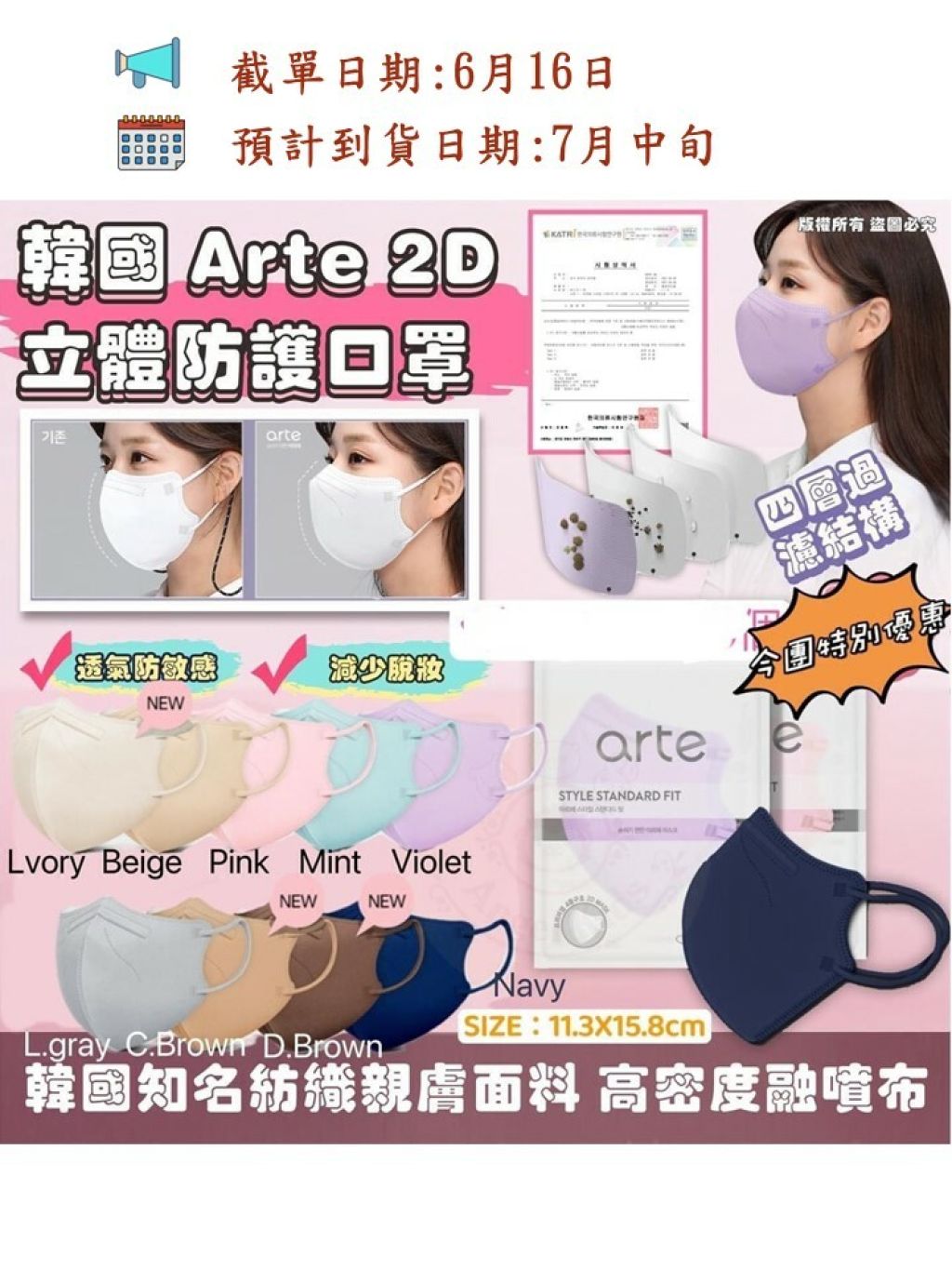 韓國製造🇰🇷ARTE 2D Mask 立體成人口罩(50個/盒)