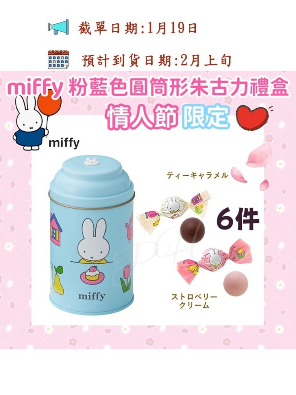 🟡Miffy粉藍色圓筒形朱古力禮盒6件 (125g)🟡