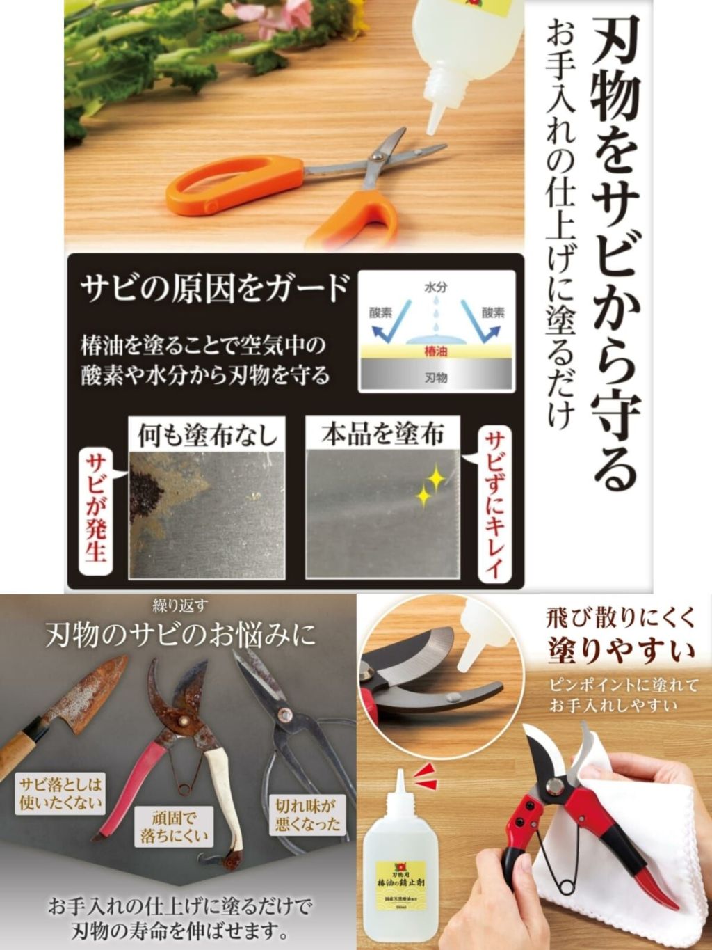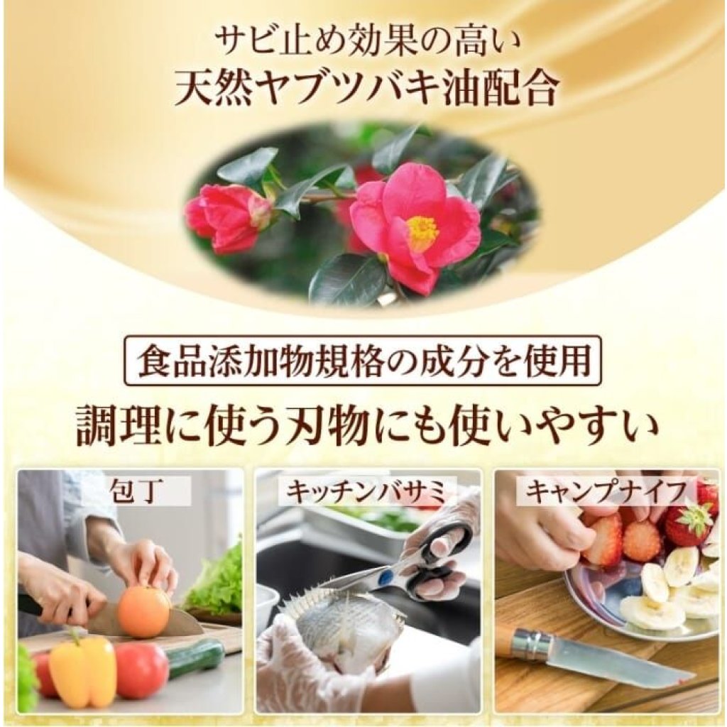 採用日本國產天然山茶花油製成的高效防鏽劑,使用標準食品添加規格的液態石蠟,安全使用於各類型刀具作保養,讓刀刃保持鋒利‼️