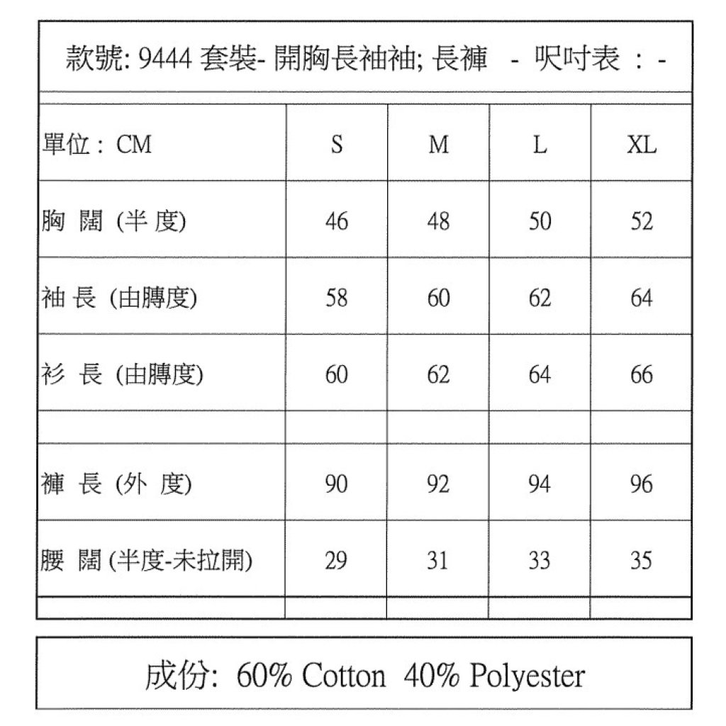 60% 棉,40% 聚酯纖維