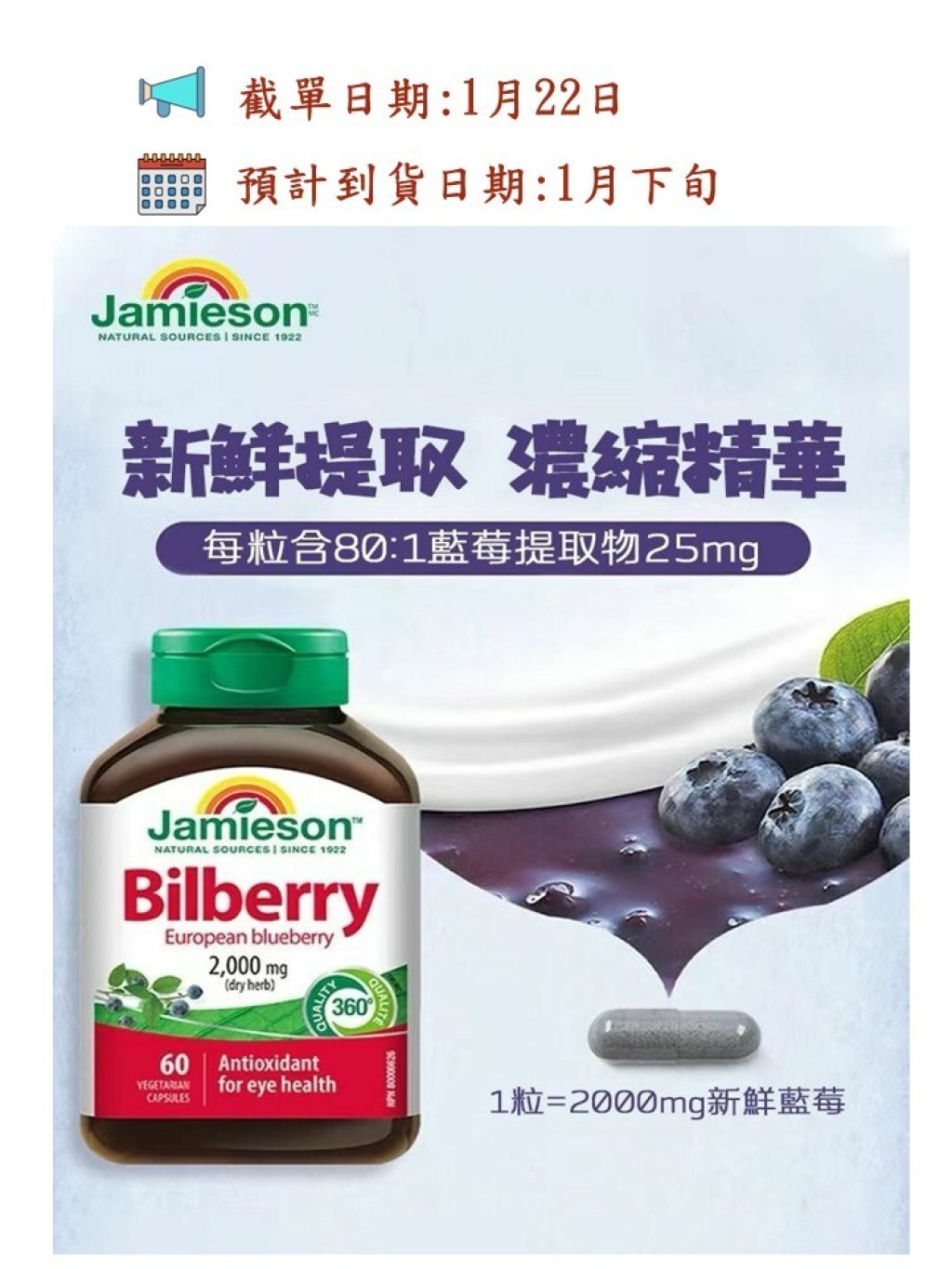 🌸Jamieson👁️護眼濃縮藍莓精華 (2000mg) 60粒